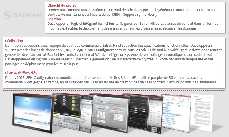 J'ai piloté plusieurs projets de développement informatique et organisé le support aux utilisateurs pour de grands groupes tels que Safran Helicopter Engines, Total, Safran Aircraft Engines, Liebherr Aerospace, Ratier Figeac (Groupe UTC), MTU.